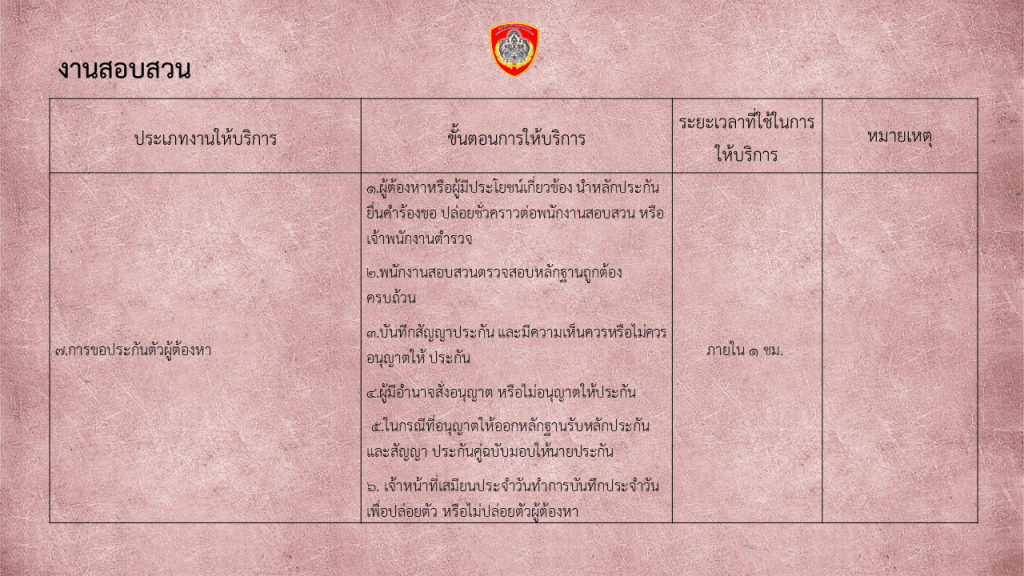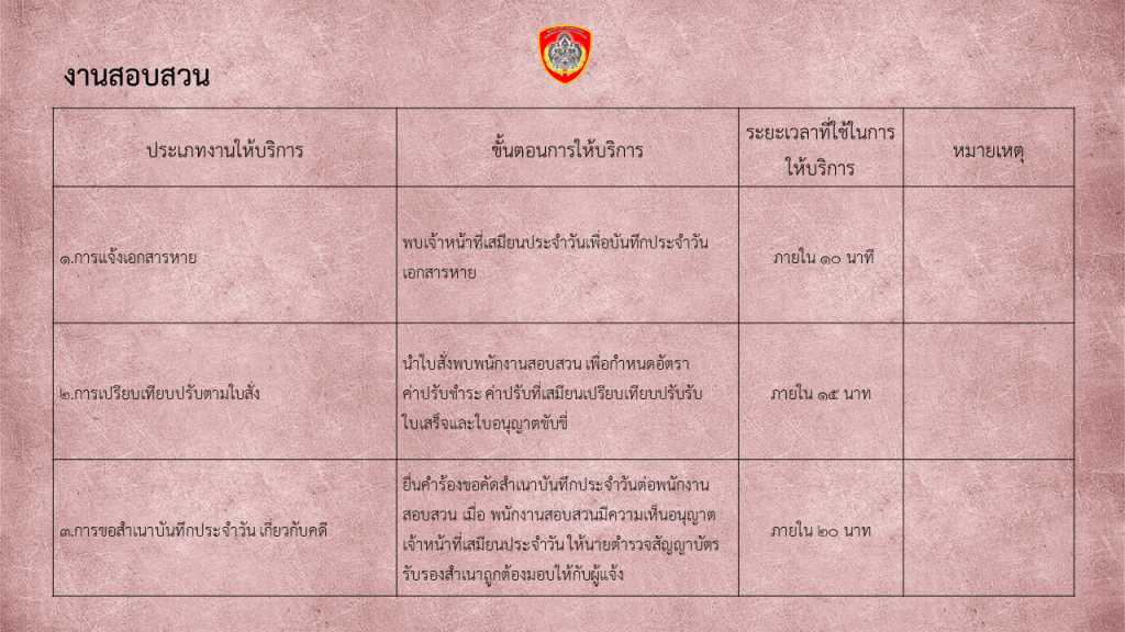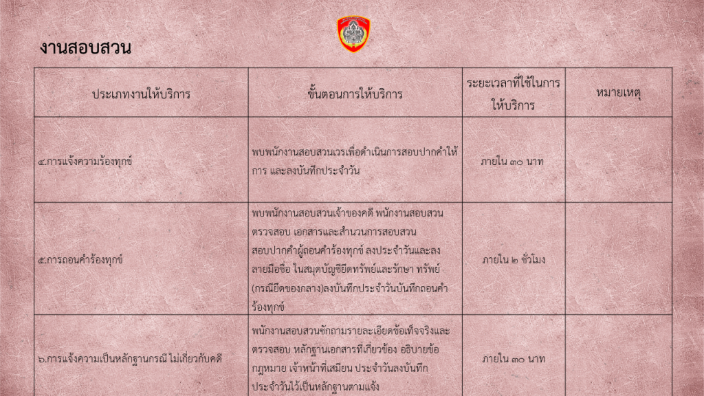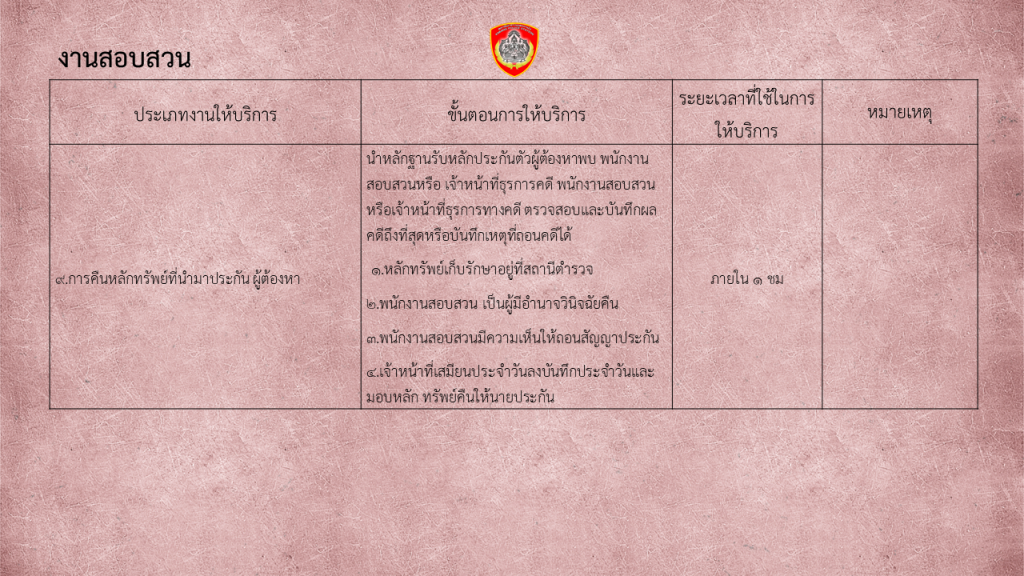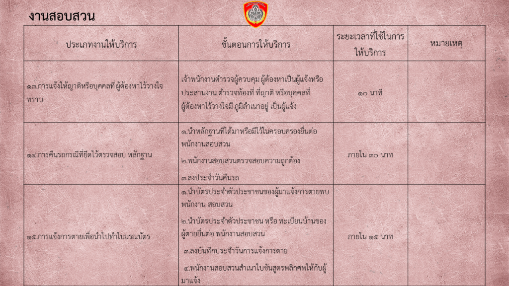 คู่มือการให้บริการประชาชน งานสอบสวน