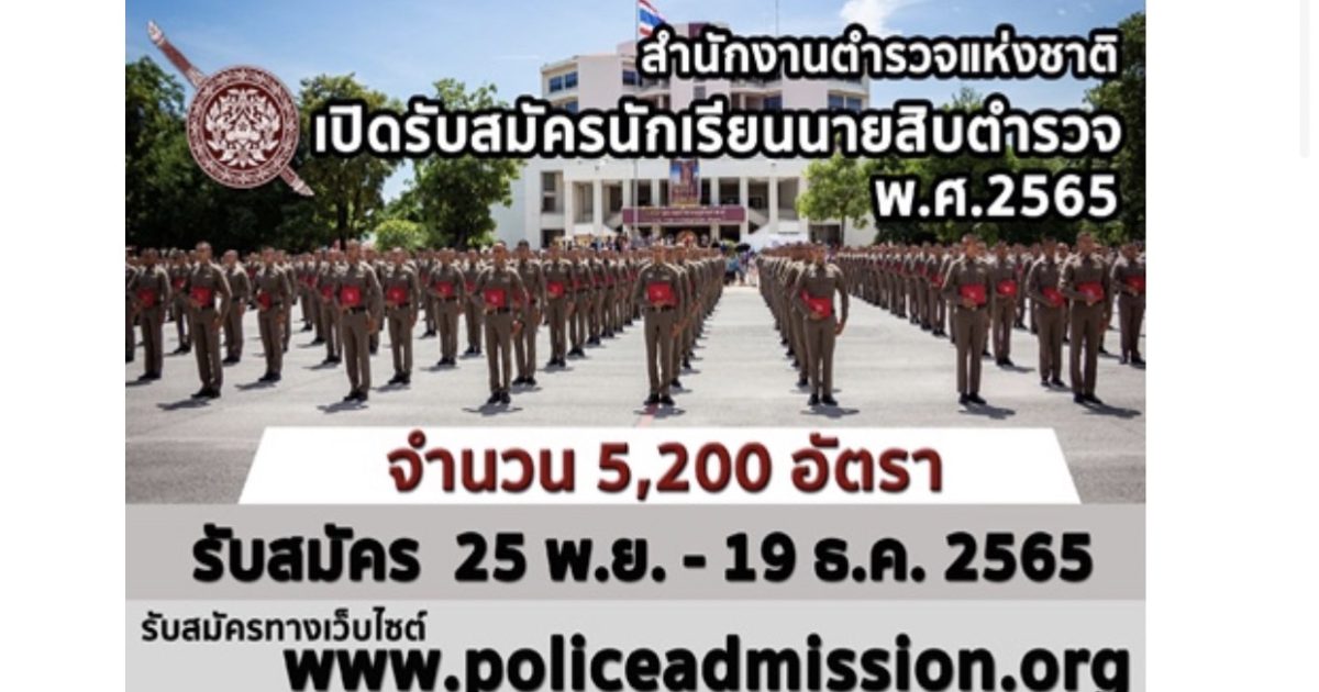 ด้วยสำนักงานตำรวจแห่งชาติ เปิดรับสมัครและคัดเลือกบุคคลภายนอก ผู้มีวุฒิประกาศนียบัตรมัธยมศึกษา ตอนปลาย (ม.6) หรือประกาศนียบัตรวิชาชีพ (ปวช.) หรือเทียบเท่า เพื่อบรรจุเป็นนักเรียนนายสิบตำรวจ (นสต.) ประจำปีงบประมาณ พ.ศ.2565 จำนวน 5,200 อัตรา โดยจะเปิดรับสมัครทุกภูมิภาค และผู้ได้รับคัดเลือกจะได้รับการบรรจุเป็น นักเรียนนายสิบตำรวจโดยมีระยะเวลาการฝึกอบรม 1 ปี 6 เดือน