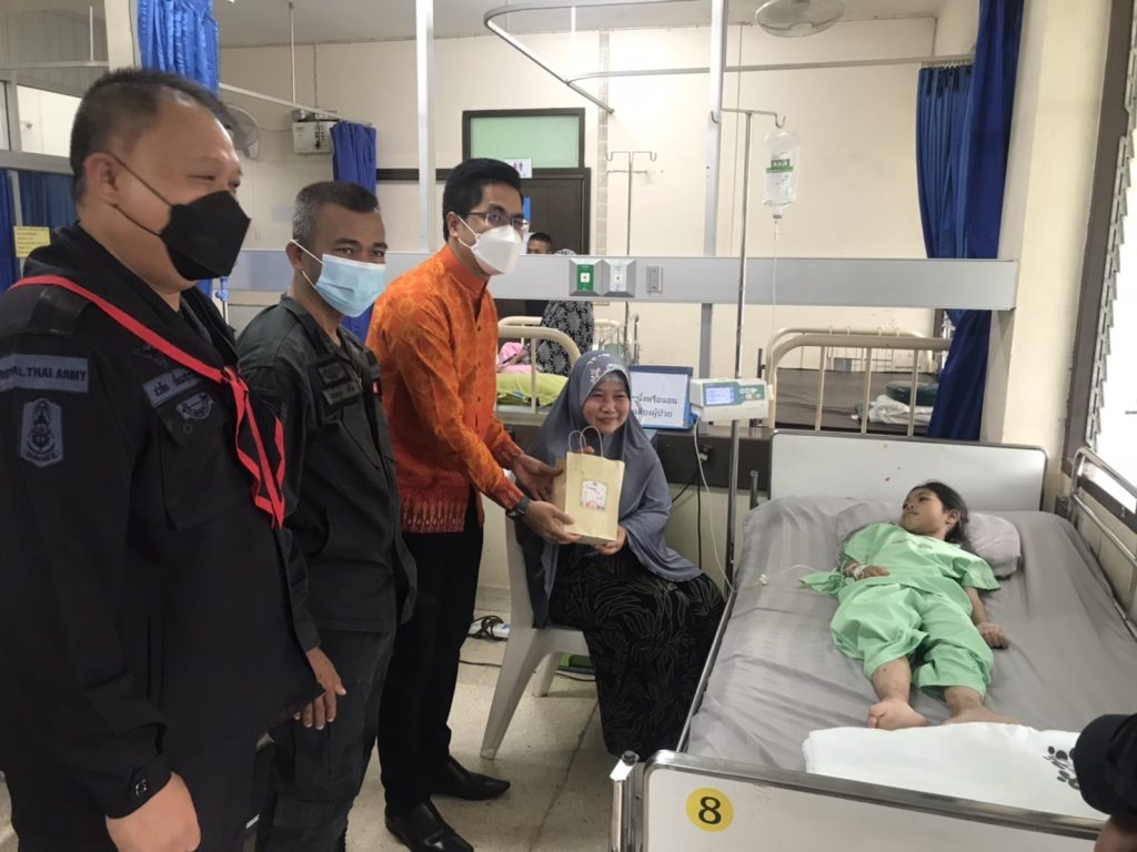 ตรวจเยี่ยมโรงพยาบาลกาบัง มอบอินทผาลัมแก่ผู้ป่วยที่พักรักษาตัวและประชาชนที่มารับการรักษาเพื่อได้นำไปใช้ประกอบในมื้ออาหาร ในการละศีลอด เนื่องในโอกาสเดือนรอมฎอนอันประเสริฐ