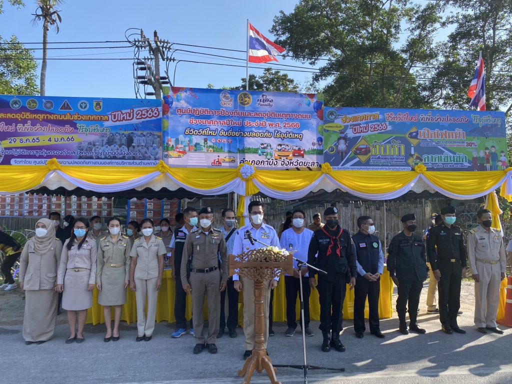 พิธีเปิดศูนย์ปฏิบัติการป้องกันและลดอุบัติเหตุทางถนนช่วงเทศกาลปีใหม่ ประจำปีงบประมาณ พ.ศ.2566 “ชีวิตวิถีใหม่ ขับขี่ปลอดภัย ไร้อุบัติเหตุ” อ.กาบัง จ.ยะลา