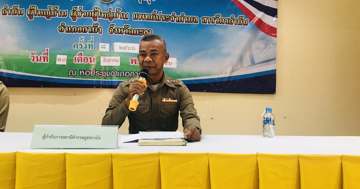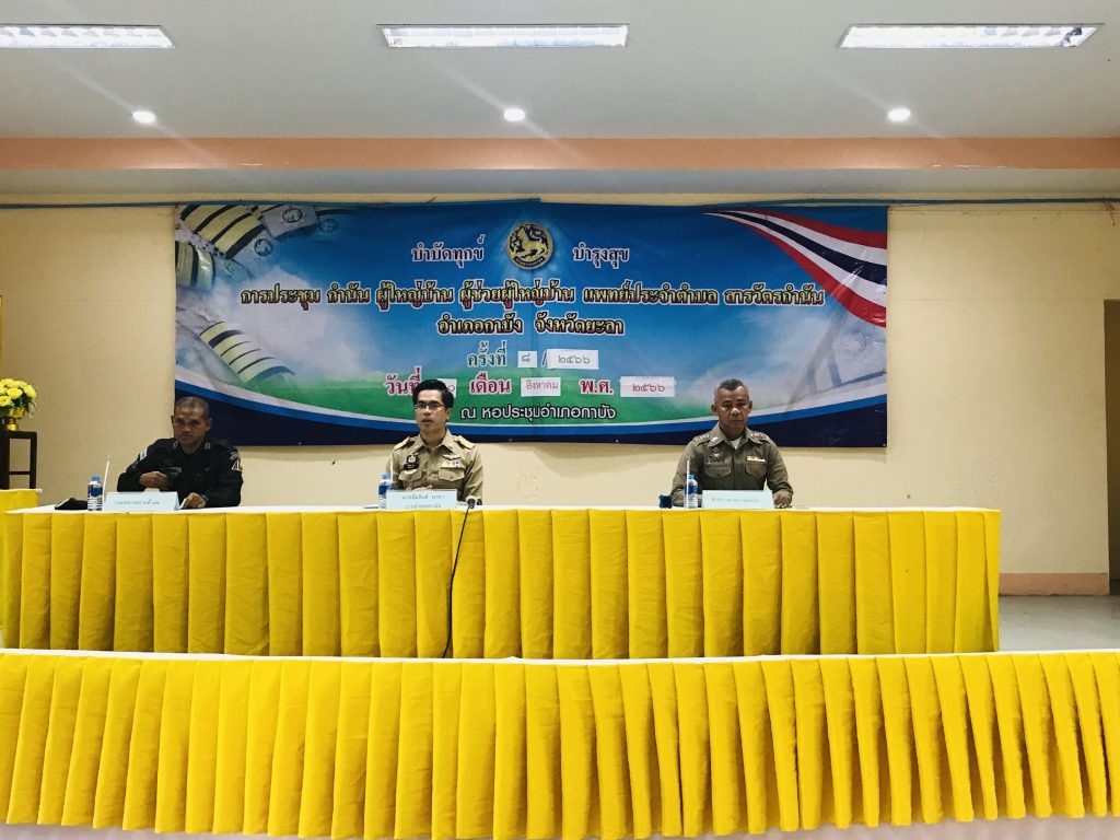 พ.ต.ท.เดชาพงษ์ ปรีชัยรอง ผกก.ป.สภ.กาบัง ร่วมประชุมกำนัน ผู้ใหญ่บ้าน ผู้ช่วยผู้ใหญ่บ้าน แพทย์ประจำตำบล สารวัตรกำนัน บันฑิตอาสาฯ ประจำเดือน สิงหาคม พ.ศ.๒๕๖๖