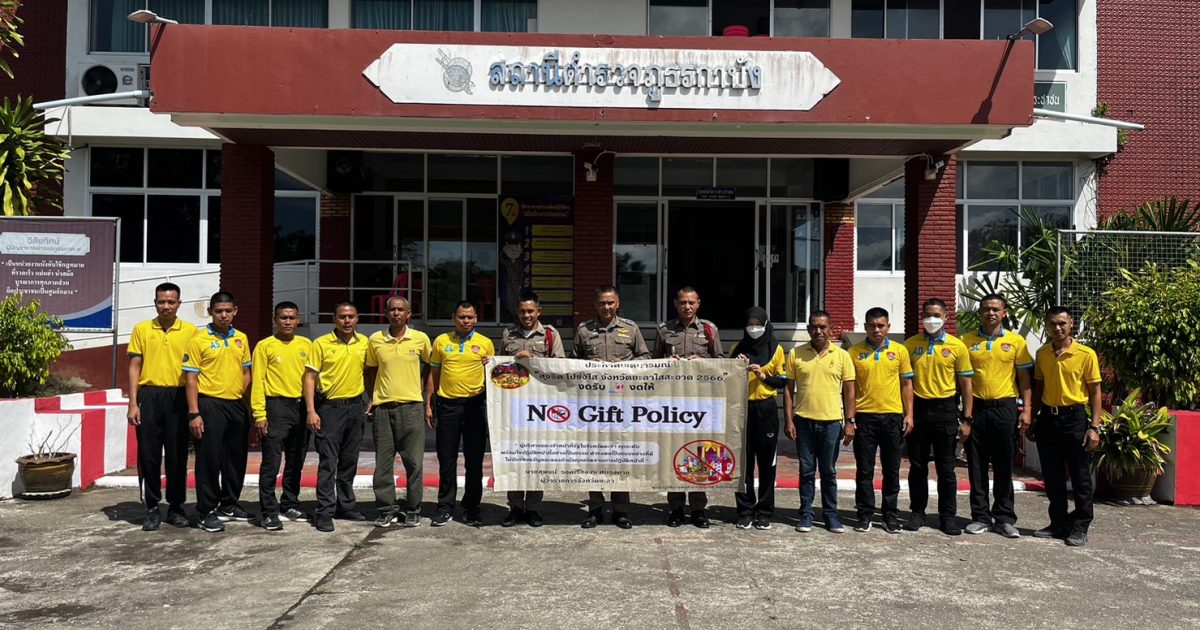 พ.ต.อ.สายูตี กาเต๊ะ ผกก.สภ.กาบัง ร่วมกับข้าราชการตำรวจ สภ.กาบัง ร่วมประกาศเจตนารมย์การปฏิบัติในการต่อต้านการรับสินบน (Anti-Bribery Policy) และการไม่รับของขวัญ ของกำนัล หรือประโยชน์อื่นใด (No Gift Policy) จากการปฏิบัติหน้าที่