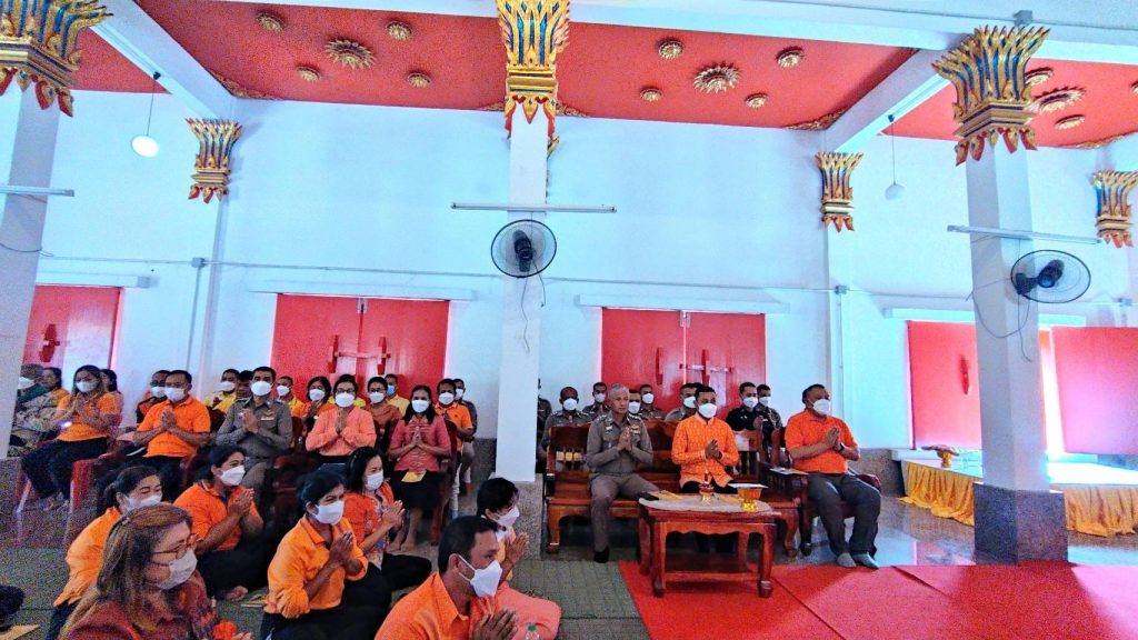 วันที่ 22 ธันวาคม 2565 เวลา 14.30 น. พ.ต.อ.มนต์ศักดิ์ ศรีสุวรรณ์ ผกก.สภ.กาบัง พ.ต.ท.วิรกิจ แก้วนวลจริง รอง ผกก.(สอบสวน) สภ.กาบัง พร้อมด้วยข้าราชการตำรวจ สภ.กาบัง ส่วนราชการ ผู้ใหญ่บ้าน และพุทธศาสนิกชนในอำเภอกาบัง ร่วมพิธีเจริญพระพุทธมนต์ เจริญจิต ภาวนาถวายพระพรชัยมงคลแด่ สมเด็จพระเจ้าลูกเธอ เจ้าฟ้าพัชรกิติยาภา นเรนทิราเทพยวดี กรมหลวงราชสาริณีสิริพัชร มหาวัชรราชธิดา ให้ทรงหายจากพระอาการประชวร ณ อุโบสถ วัดบาละ ตำบลบาละ อำเภอกาบัง จังหวัดยะลา