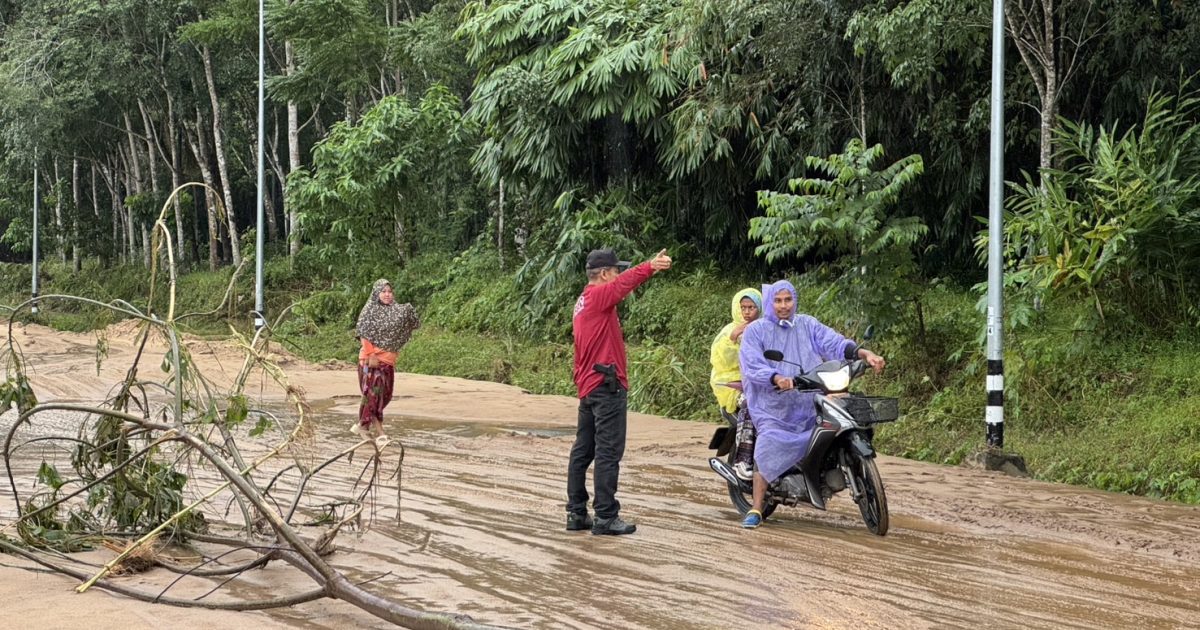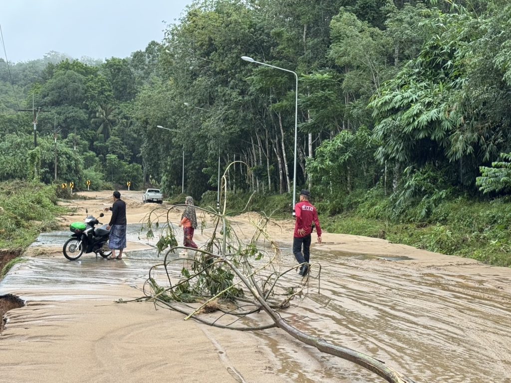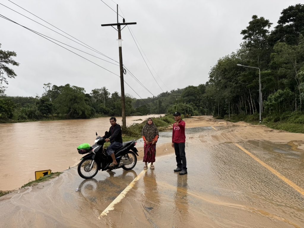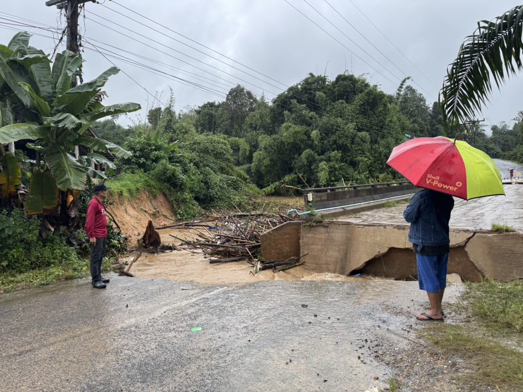 วันที่ 28 พ.ย.67 พ.ต.ท.วิรกิจ แก้วนวลจริง รอง ผกก.สอบสวน สภ.กาบัง ตรวจสอบพื้นที่ได้รับผลกระทบอุทกภัยน้ำท่วมในพื้นที่ และดินโคลนถล่มฯ
