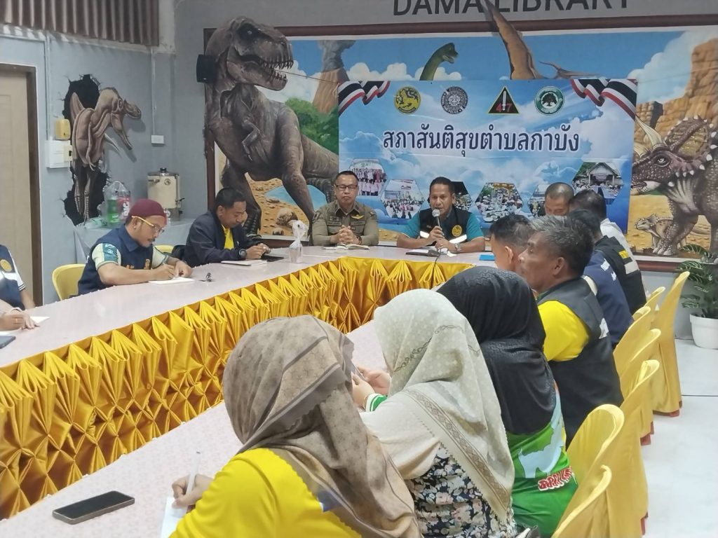 วันที่ 5 ส.ค. 68 พ.ต.ท.เสน่ห์ แก้วเรือง สวป.สภ.กาบัง ร่วมประชุมประจำเดือน สภาสันติสุขตำบลกาบัง