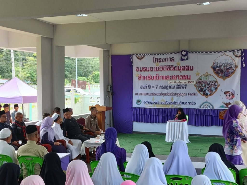 วันที่ 6 กรกฎาคม 2567 เวลา 09.00 น. พ.ต.ต.เสน่ห์ แก้วเรือง สวป.สภ.กาบัง ร่วมกับองค์การบริหารส่วนตำบลกาบัง จัดทำโครงการฝึกอบรมตามวิถีมุสลิมสำหรับเด็กและ เยาวชนตำบลกาบัง ประจำปี 2567