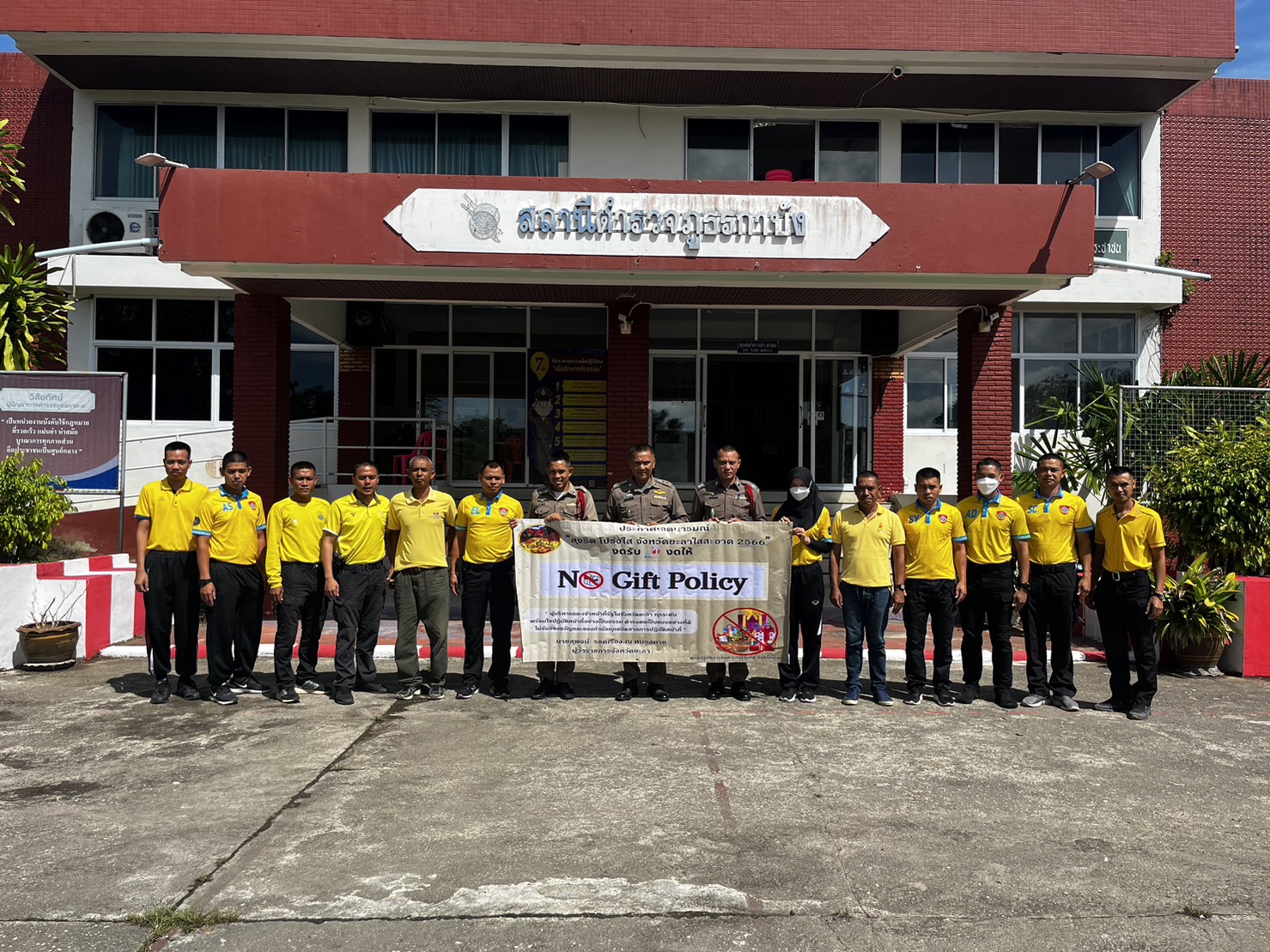 พ.ต.อ.สายูตี กาเต๊ะ ผกก.สภ.กาบัง ร่วมกับข้าราชการตำรวจ สภ.กาบัง ร่วมประกาศเจตนารมย์การปฏิบัติในการต่อต้านการรับสินบน (Anti-Bribery Policy) และการไม่รับของขวัญ ของกำนัล หรือประโยชน์อื่นใด (No Gift Policy) จากการปฏิบัติหน้าที่