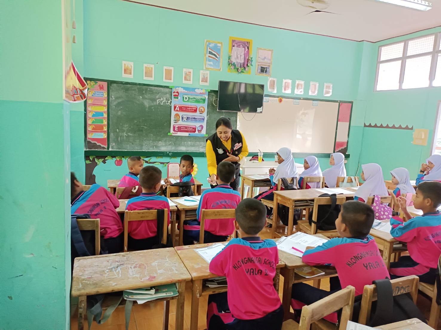 วันที่ 22 พ.ย.65 เวลา 14.00-14.45 น. ภายใต้การอำนวยการของ พ.ต.อ.มนต์ศักดิ์ ศรีสุวรรณ์ ผกก.สภ.กาบัง พ.ต.ท.เดชาพงษ์ ปรีชัย รอง ผกก.ป.ฯ พ.ต.ท.สำราญ มากจันทร์ รอง ผกก.สส.ฯ ได้มอบหมายให้ พ.ต.ต.หญิงจศิมา วงศ์งาม สว.อก.สภ.กาบัง ปฎิบัติหน้าที่ ครู ตำรวจ D.A.R.E. ร่วมกับ ชป.ตชส.สภ.กาบัง ดำเนินกิจกรรมดำเนินการสอน ตามโครงการ “การศึกษาเพื่อต่อต้านการใช้ยาเสพติดในเด็กนักเรียน (D.A.R.E.ประเทศไทย)”