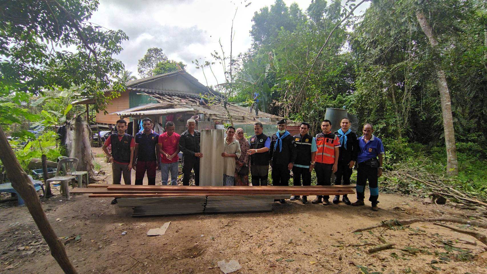 วันที่ 13 พ.ย.65 เวลา 10.00 น. พ.ต.อ.มนต์ศักดิ์ ศรีสุวรรณ์ ผกก.สภ.กาบัง พร้อมด้วยกองกำลัง 3 ฝ่าย ตำรวจ ทหาร ปกครอง ลงพื้นที่ตรวจเยี่ยมพร้อมมอบสิ่งของแก่ประชาชนที่ได้รับผลกระทบจากพายุลมแรง ทำให้ทรัพย์สิน (หลังคาบ้าน) ได้รับความเสียหาย